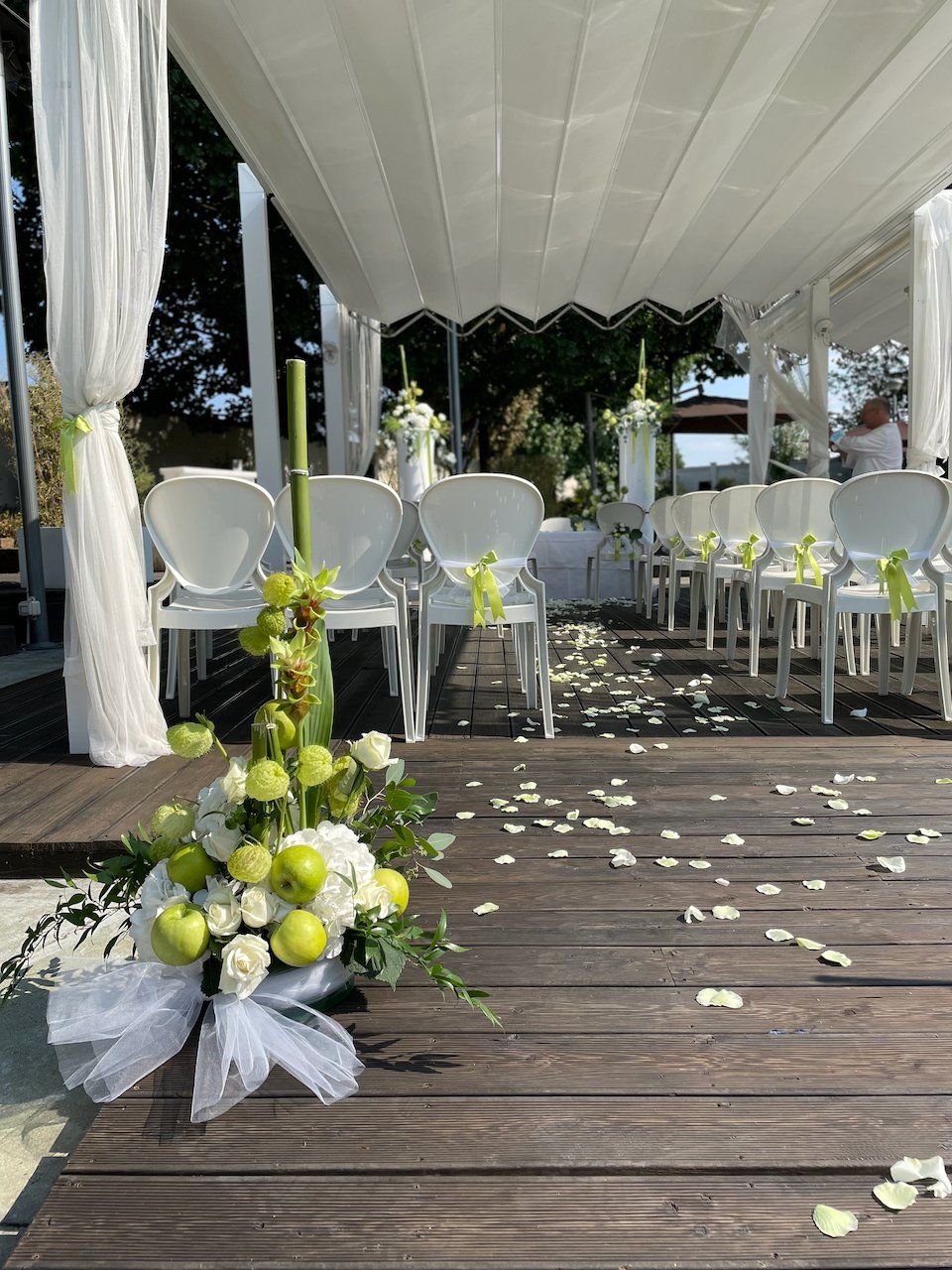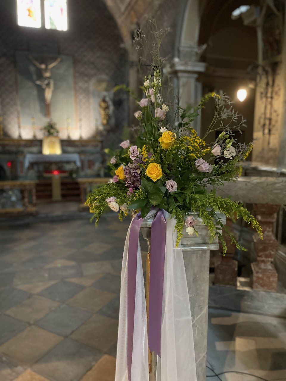 L'allestimento di una chiesa e di una location nasce dalle idee a dai desideri degli sposi che assieme a noi, ed alla nostra esperienza, andrà a prendere forma e a disegnare ogni dettaglio dell'atmosfera sognata per quel giorno tanto speciale.