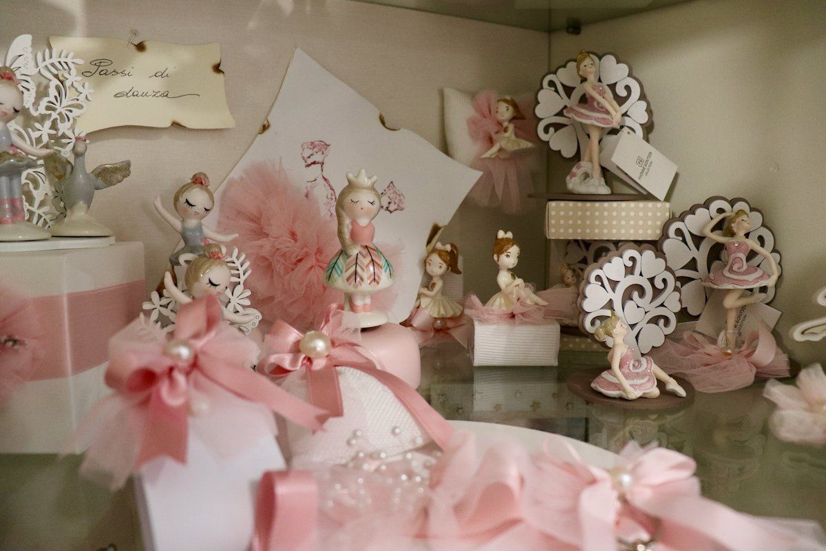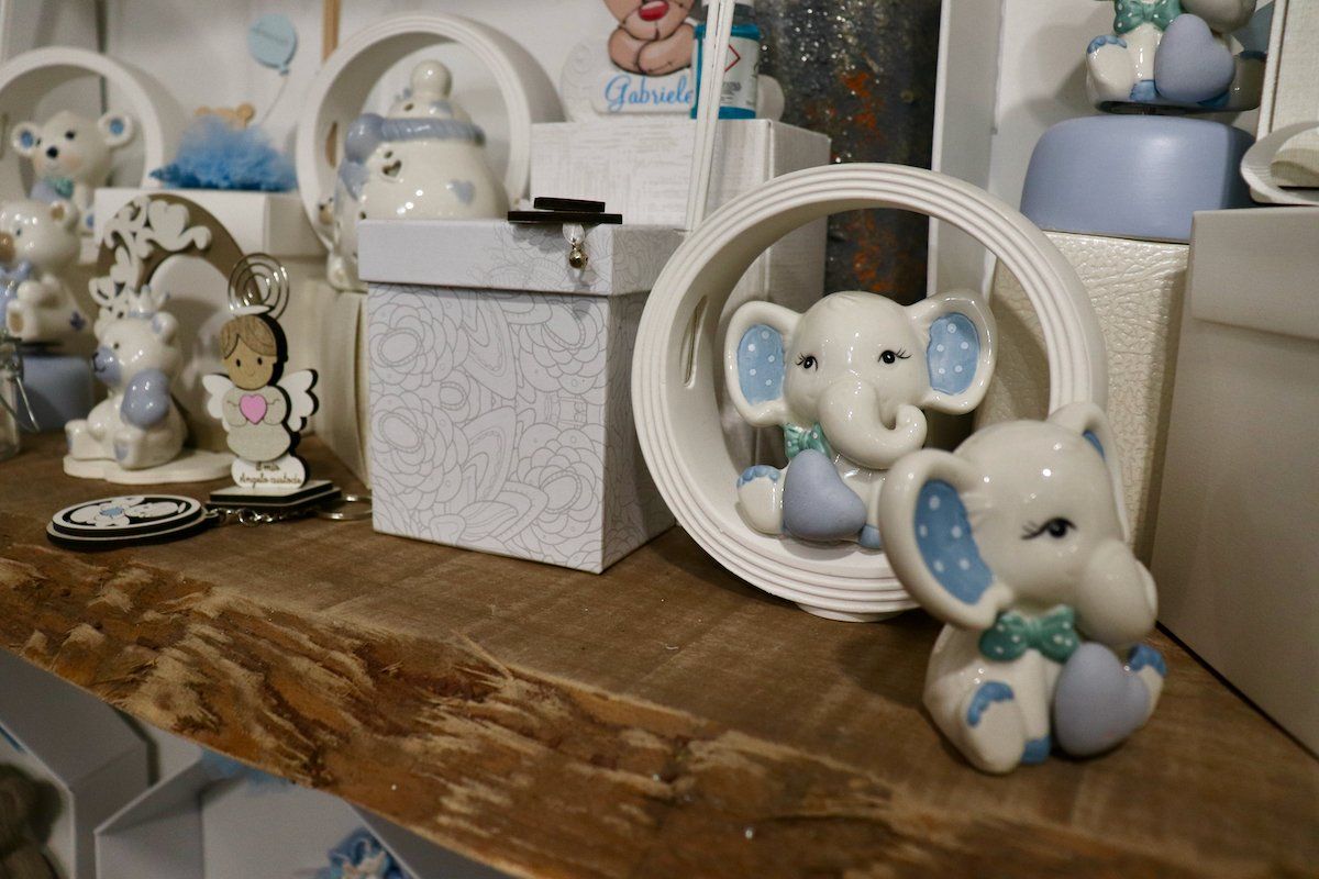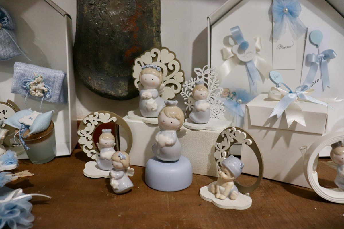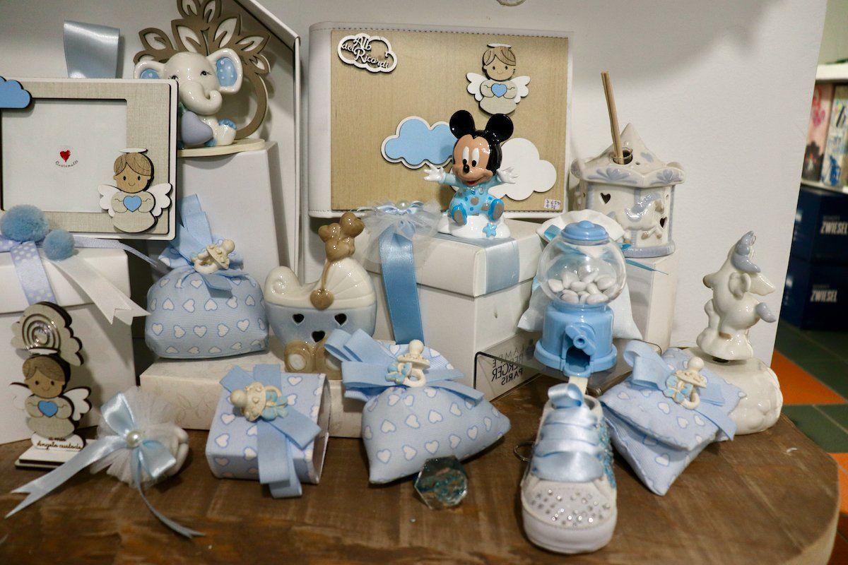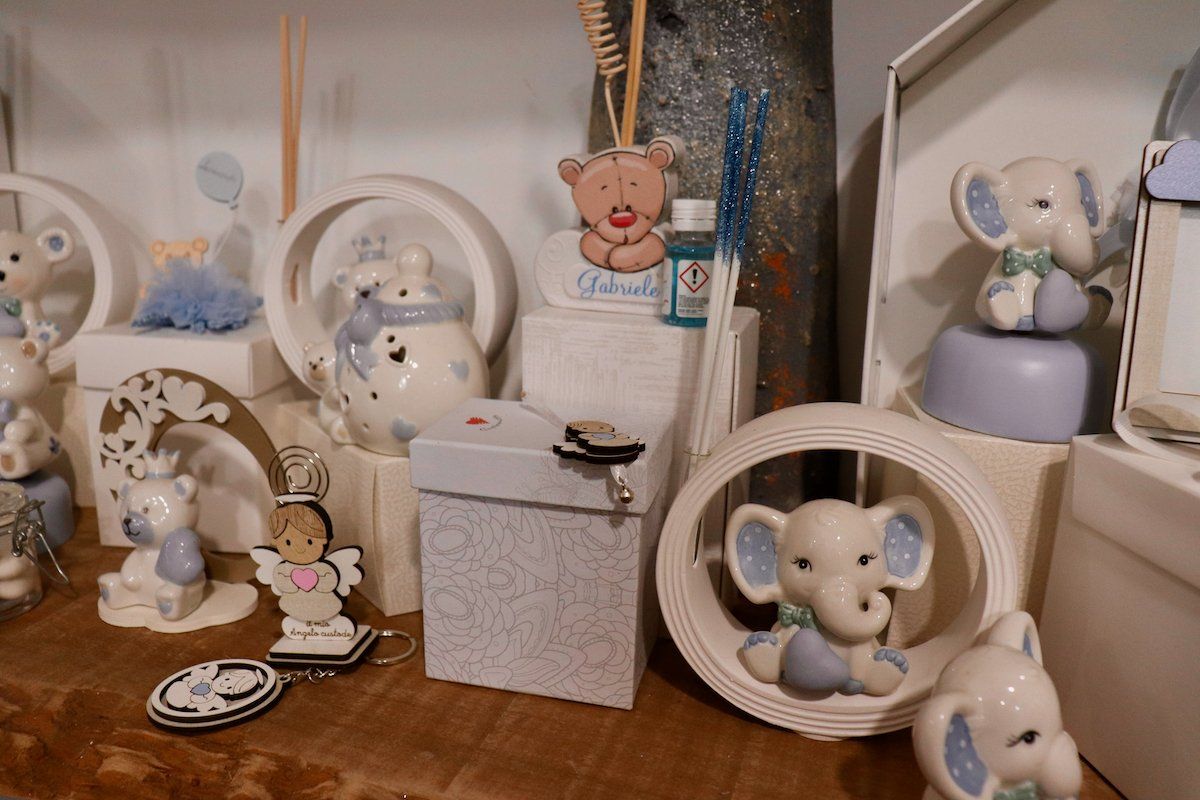 In negozio è inoltre presente un'ampia selezione di sacchetteria, scatoline e barattolini e tra le personalizzazioni viene proposto un servizio di incisione a mano del nome o delle iniziali dei bambini.